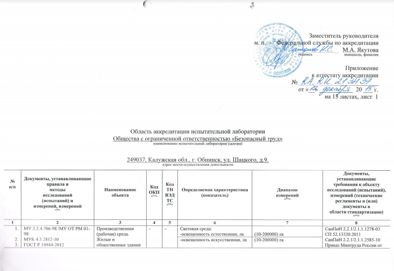 Область аккредитации